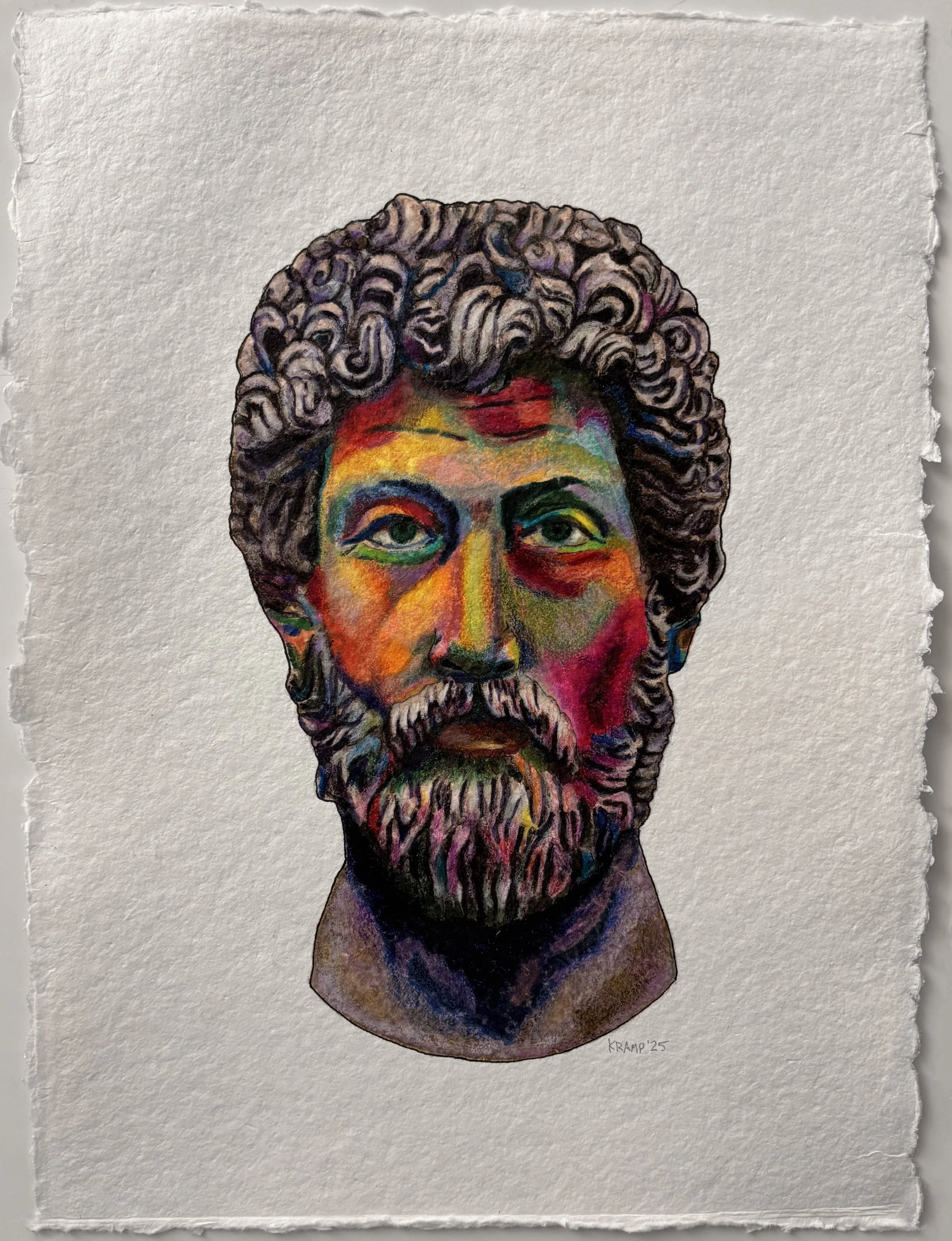 Marker, colored pencil, chalk pastel on 140lb archival aquarelle paper.